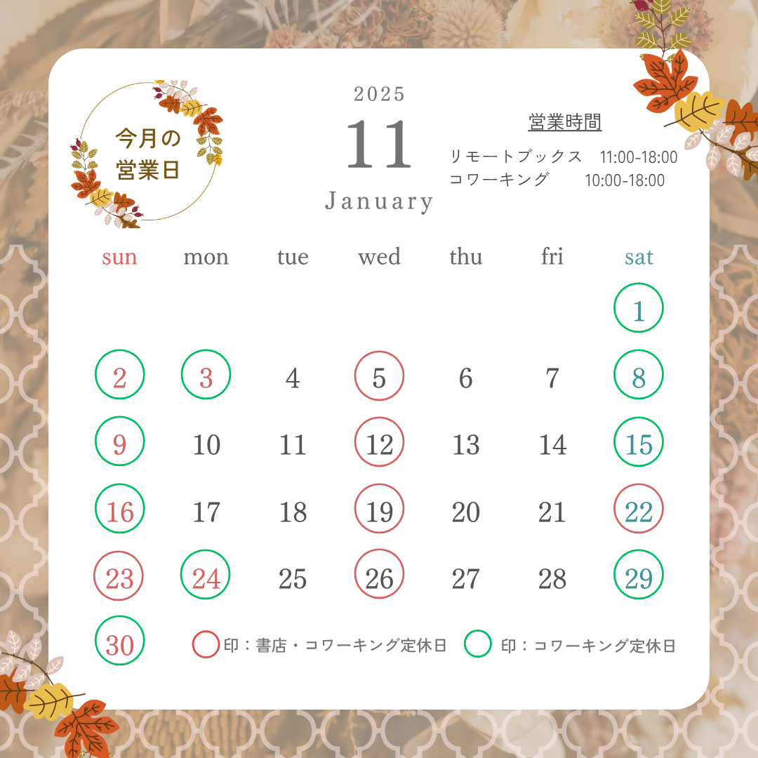 本屋・コワーキングスペースは毎週水曜日(5、12、19、26)および22日、23日を定休日とさせていただきます。